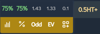 Vou exemplificar com uma partida real uma estratégia que pratico há 2 anos, essa estratégia consiste em encontrar valor esperado positivo no pré-jogo com auxilio de ferramentas com indicadores.